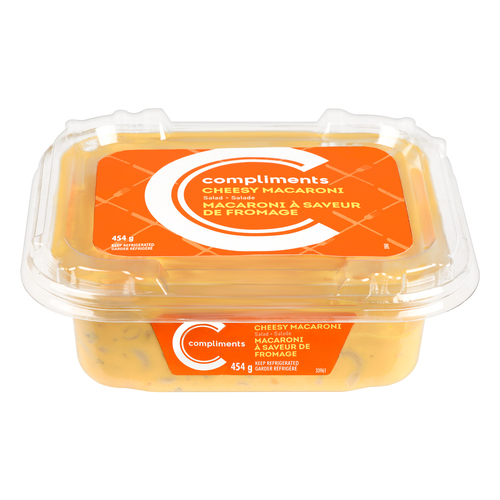 Cooked macaroni (contains WHEAT), Mayonnaise (soybean oil, water, liquid egg yolk, vinegar, high fructose corn syrup, salt, calcium disodium EDTA), Water, High fructose corn syrup, Soybean oil, Pickles, Vinegar, Onion, Carrot, Liquid egg yolk, Red bell pepper, Modified corn starch, Salt, Prepared mustard (water, vinegar, mustard seed, salt, sugar, soybean oil, spice, colour, garlic xanthan gum, calcium disodium EDTA, natural flavour, citric acid), Sugar, Cheese flavour [cheddar cheese (pasteurized milk, bacterial culture, salt, enzymes), cream, salt, sodium phosphate, lactic acid], Mono- and diglycerides, Mustard flour, Potassium sorbate, Sodium benzoate, Colour, Dried parsley, Xanthan gum, Paprika extract, Dextrose, Spice, Garlic powder, Yeast extract, Onion powder, Disodium inosinate.
