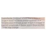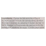 Enriched wheat flour, water, sugar, yeast*, canola and/or soybean oil, sesame seed, wheat gluten*, salt, vinegar*, calcium propionate, sorbic acid, soya lecithin. *Order may change