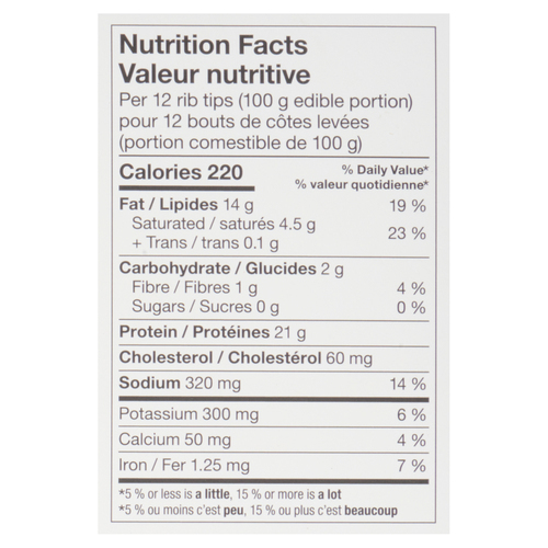 - Per: 12 ribs (100 g edibl