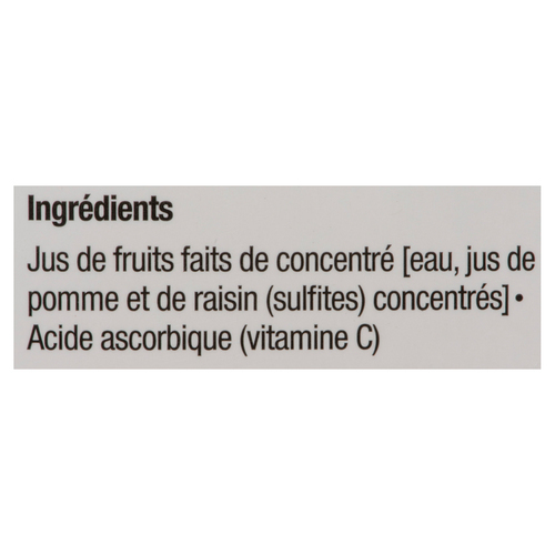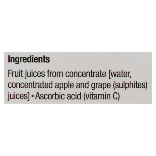 Fruit juices from concentrate [water, concentrated apple and grape (sulphites) juices], Ascorbic acid (vitamin C)